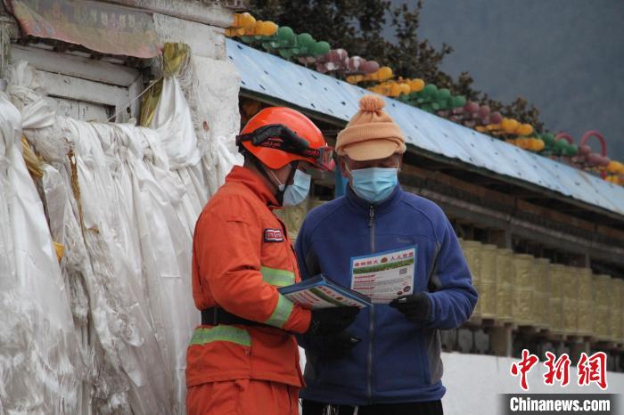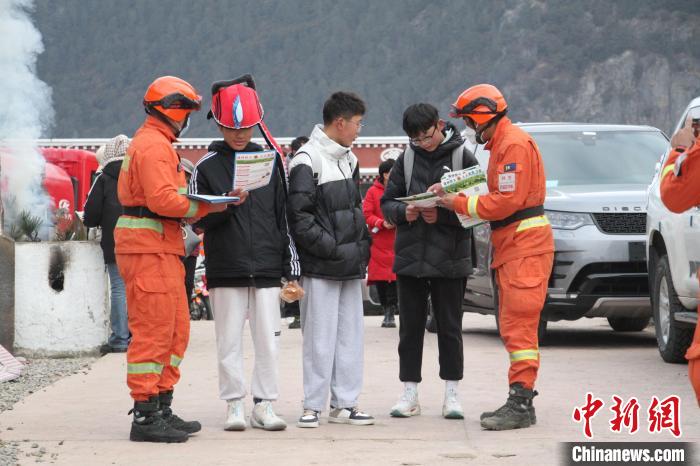 圖為森林消防員在景區(qū)重點(diǎn)區(qū)域普及防火知識(shí)。 林芝市森林消防供圖