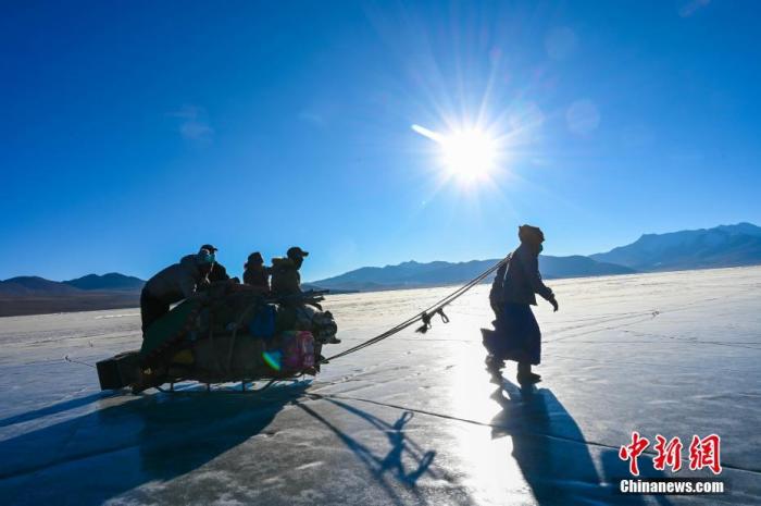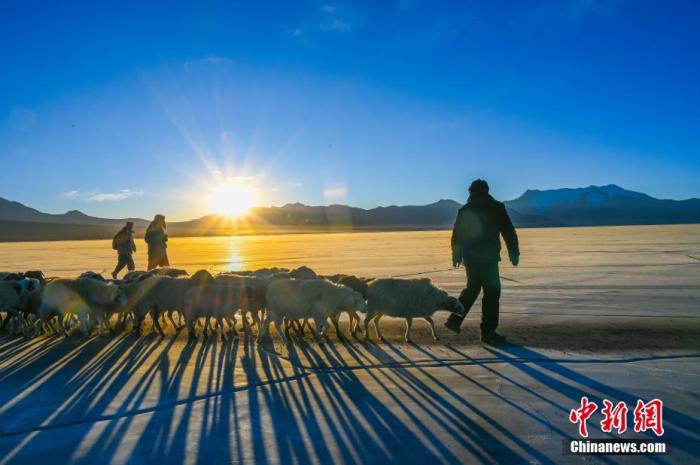 這個(gè)邊境小村3日迎來了一年一度的“趕羊”盛事。村民們將1400余只羊由岸邊通過厚實(shí)的冰面趕往湖心島牧場(chǎng)。普姆雍措被稱為“仙女之淚”,位于西藏山南市浪卡子縣,每到冬季極寒時(shí),便是羊群轉(zhuǎn)牧場(chǎng)的好時(shí)機(jī)。