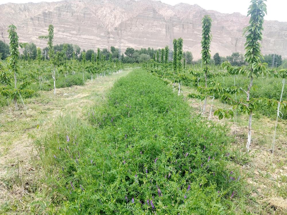 “果園處于黃河河谷沖積帶,產(chǎn)區(qū)光照時(shí)間長(zhǎng),晝夜溫差大,雨熱同期。但土壤是黏土,透氣性差一些,改變這個(gè)情況,就要靠種植綠肥,使用有機(jī)肥之類的。”果園負(fù)責(zé)人滕樂(lè)知告訴記者。這幾年,他們和國(guó)家綠肥產(chǎn)業(yè)技術(shù)體系西寧綜合試驗(yàn)站合作后,每年都會(huì)在果樹(shù)間作綠肥箭筈豌豆、二月蘭,收割翻壓增強(qiáng)土壤肥力,以此一點(diǎn)點(diǎn)改善土壤,土壤好了,果樹(shù)就好,果樹(shù)長(zhǎng)好了自然就有好果子。