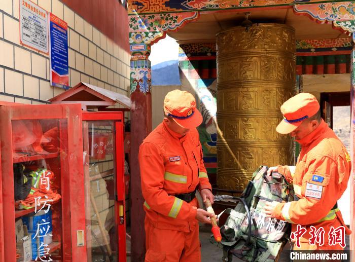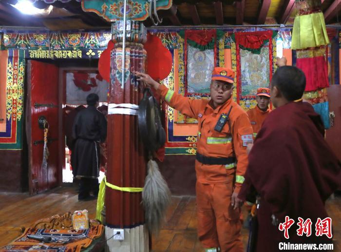 森林消防隊員正在排查寺廟火災隱患。 西繞拉翁 攝