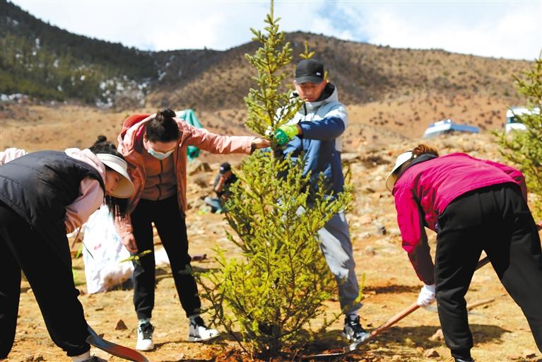 4月7日,西藏自治區(qū)生態(tài)環(huán)境廳開展“攜手共植愛心樹 我為拉薩添新綠”聯(lián)合主題黨日活動,組織黨員干部職工義務(wù)植樹,為高原添綠增色。趙礦 周文良 攝