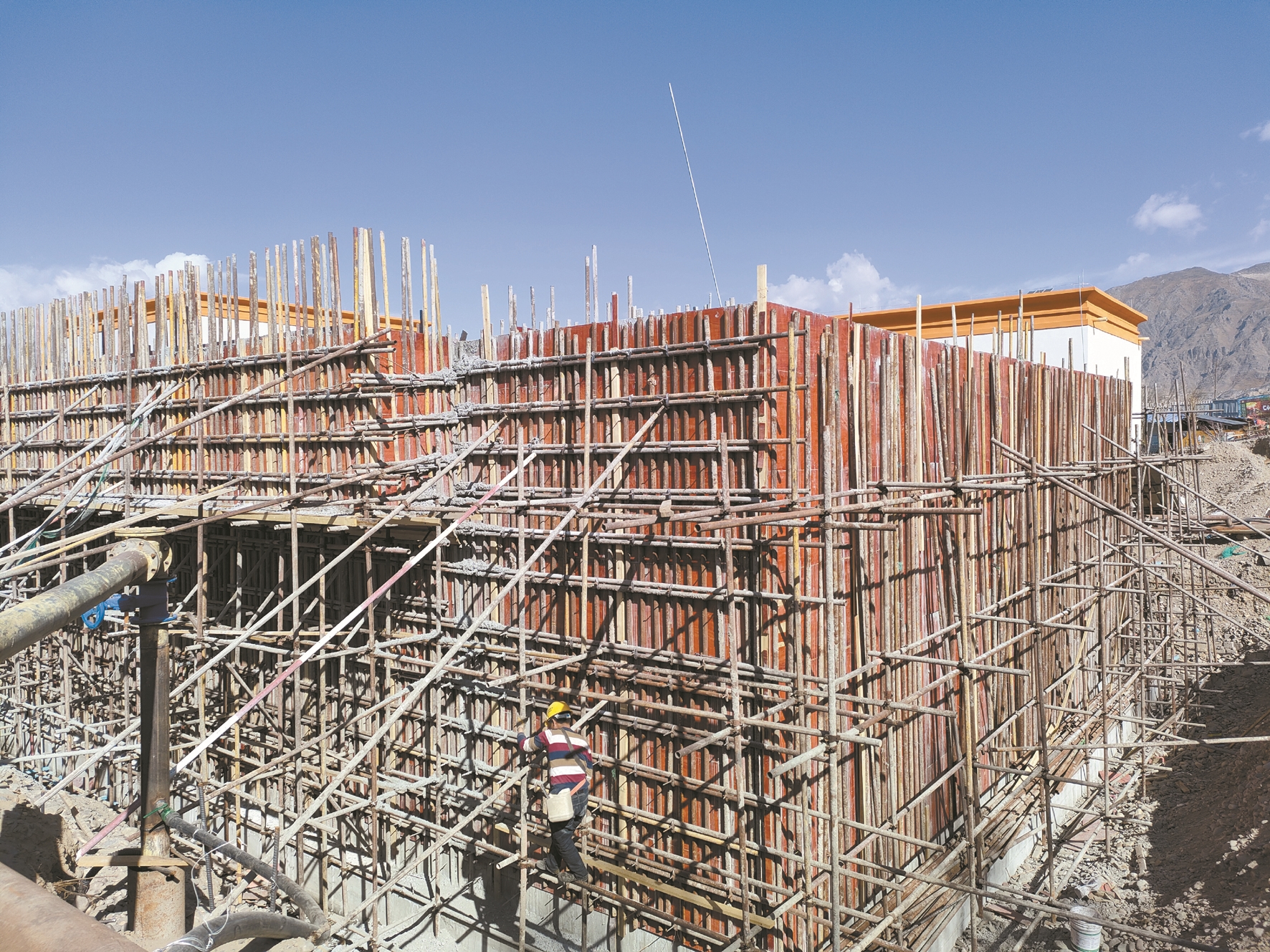 圖為施工現(xiàn)場,工人正在加緊作業(yè)。拉薩融媒記者 李從芳攝