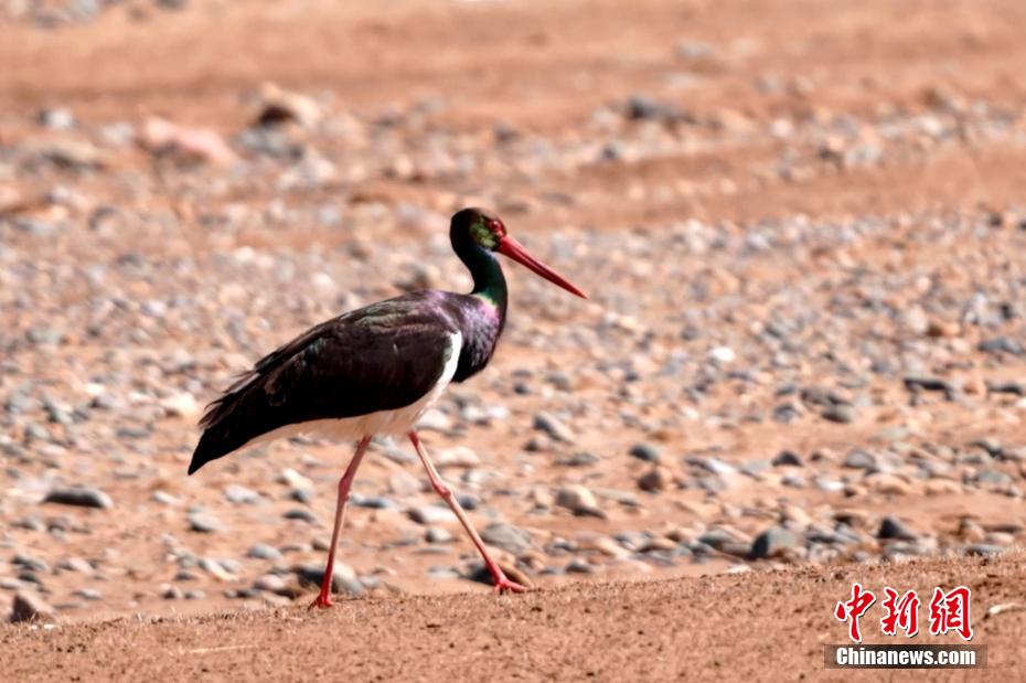 近日,攝影師在位于祁連山國家公園青海片區(qū)的青海省海北藏族自治州祁連縣阿柔鄉(xiāng)境內(nèi)拍攝到兩只黑鸛愜意覓食、翱翔。[詳細(xì)]