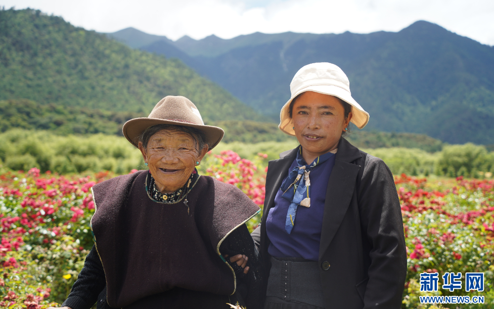 家在朵當(dāng)(卡達(dá))村的索朗卓瑪帶著自己81歲的母親前來(lái)賞花。她說(shuō),“村子里能開出這么漂亮的花,感到特別高興。帶媽媽來(lái)賞花,再拍拍照,很開心?!蹦概说男δ樤诨ǘ涞挠骋r下更加燦爛。