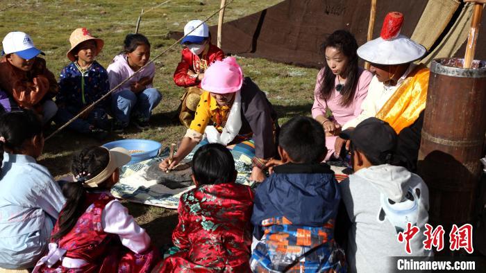 圖為青少年與牧民體驗?zāi)ヴ佤?。拉薩市圖書館供圖