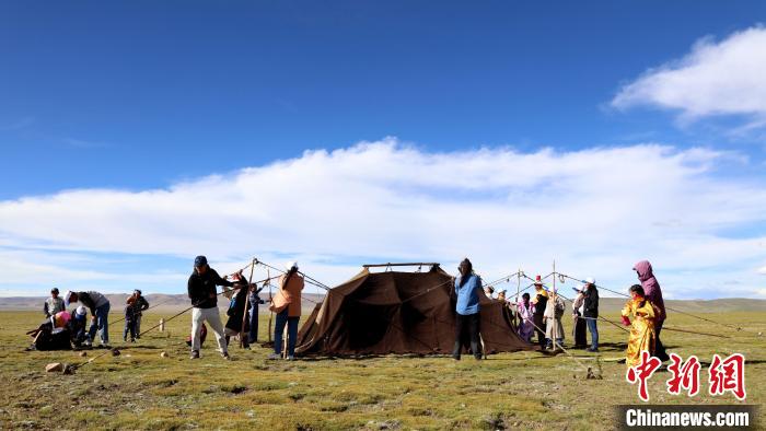 圖為青少年與牧民共同搭建帳篷。拉薩市圖書館供圖