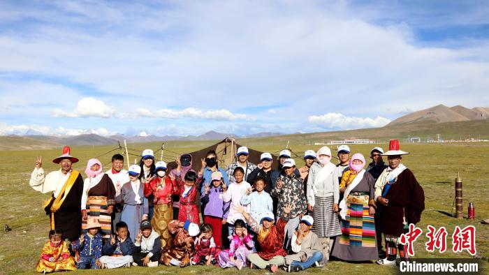 圖為青少年和牧民合影留念。拉薩市圖書館供圖