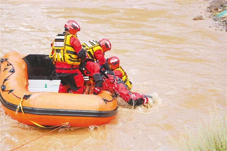 消防員進行水槍操作訓練,不斷豐富實戰(zhàn)化訓練內(nèi)容。