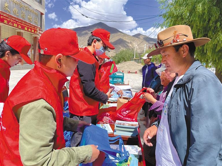 山南市新時代文明實(shí)踐志愿者在開展環(huán)保宣傳活動
