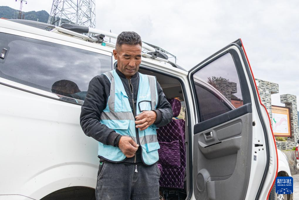 雅尼國家濕地公園管護(hù)員普布多杰在穿工作馬甲,準(zhǔn)備開始巡護(hù)工作(9月8日攝)。新華社發(fā)(丁增尼達(dá) 攝)