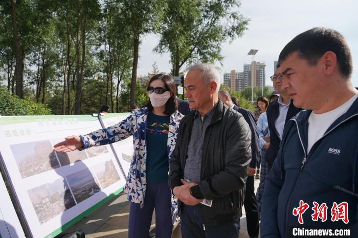 圖為兩位烏茲別克斯坦政黨代表(右一、中)走進(jìn)西寧市北山美麗園了解該地原貌舊址。馬銘言 攝