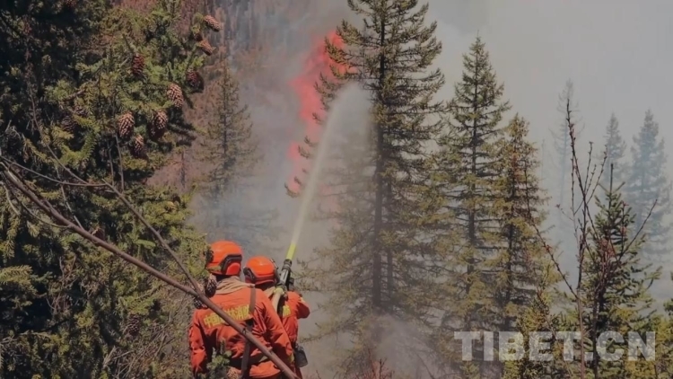 圖為森林消防隊員采取以水滅火方式撲打樹冠火 圖源:林芝市森林消防支隊