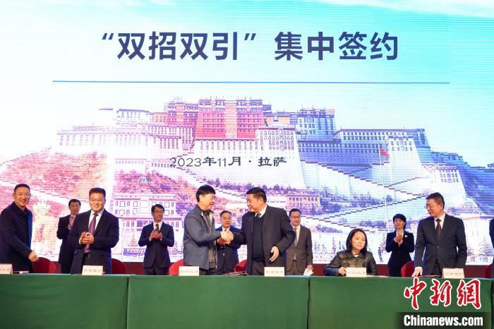 14日,西藏自治區(qū)在拉薩舉行“雙招雙引”(援藏招商引資、招才引智)集中簽約儀式。簽約儀式上,共簽約援藏招商引資項目20個,協(xié)議資金103.08億元(人民幣,下同),涉及清潔能源、生物科技、特色農牧、綠色工業(yè)、現代服務等領域。21名引進專家人才代表參加現場簽約。