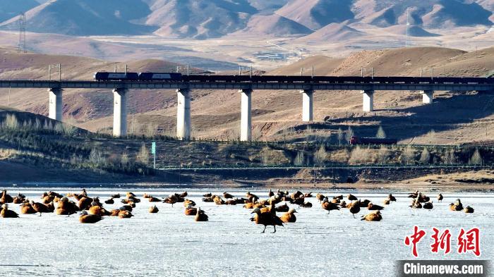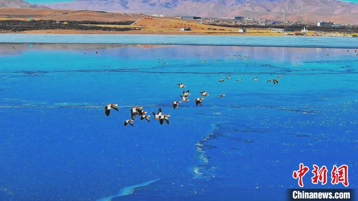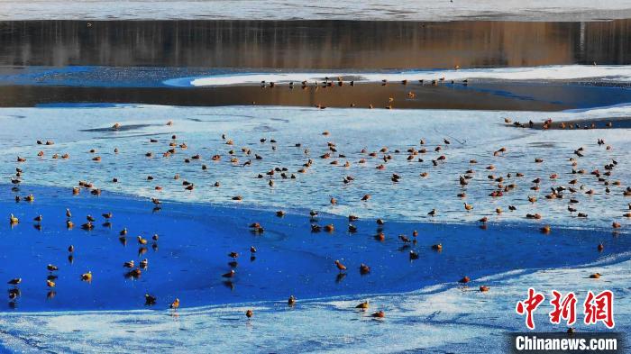 高原冬日,在位于青海湖北岸的青海省海北藏族自治州海晏縣境內(nèi),成群的赤麻鴨、綠頭鴨等鳥類現(xiàn)身青海省東大灘水庫(kù),它們時(shí)而“泡湯”洗浴,時(shí)而振翅高飛,時(shí)而覓食嬉戲,展現(xiàn)出一幅冬日和諧的美好畫面。近年來,越來越多鳥類來到青海湖北岸覓食休憩,此時(shí)一半冰層一半碧波的東大灘水庫(kù)成了鳥類覓食的好去處。