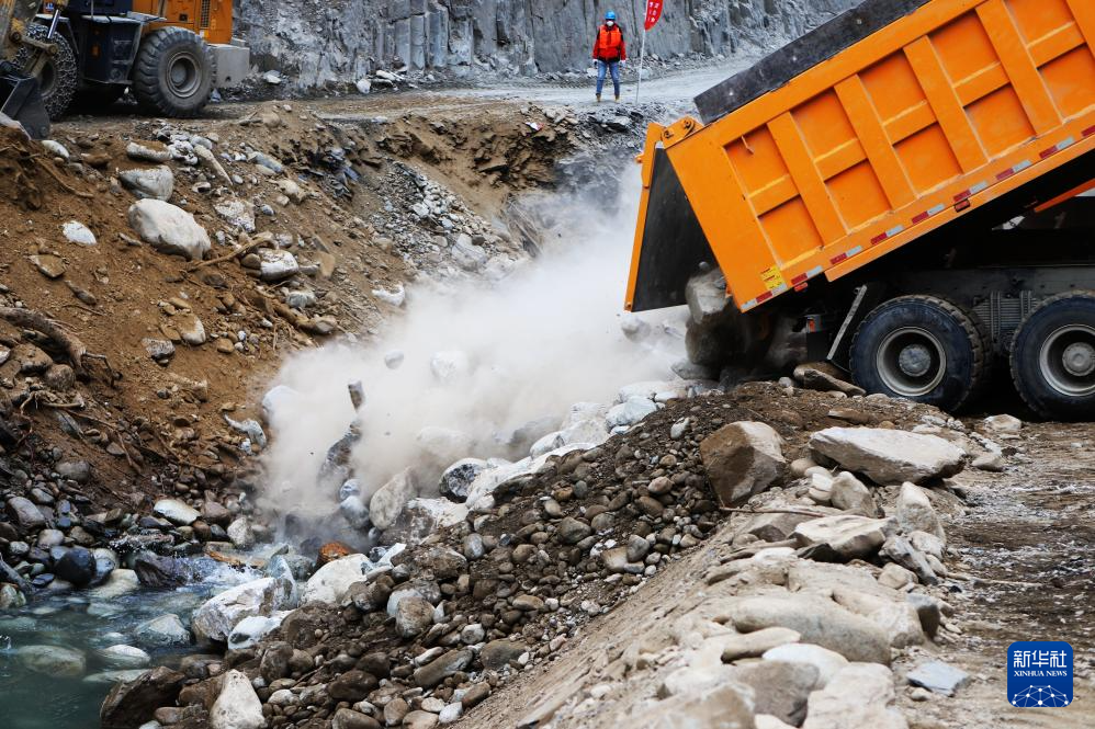 大唐扎拉水電站截流施工現(xiàn)場(chǎng)(1月3日攝)。新華社記者 關(guān)明輝 攝