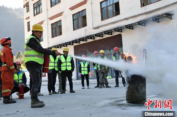 圖為項(xiàng)目部職工正在進(jìn)行滅火器操作。趙健宇 攝