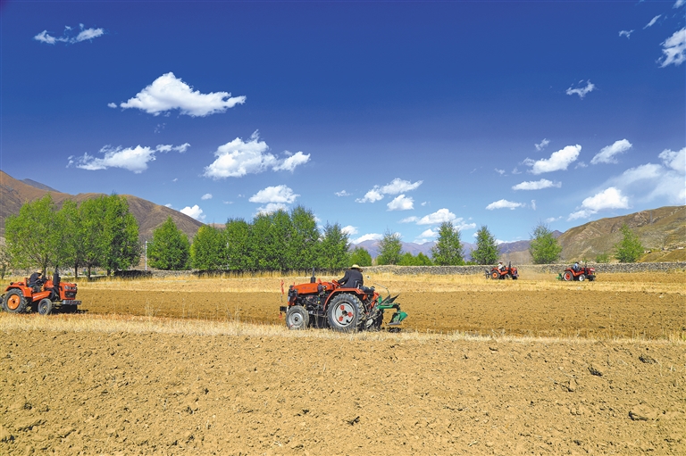 圖為拉薩市墨竹工卡縣唐加鄉(xiāng)村民在田間冬播。通訊員 洛克 記者 唐斌 攝