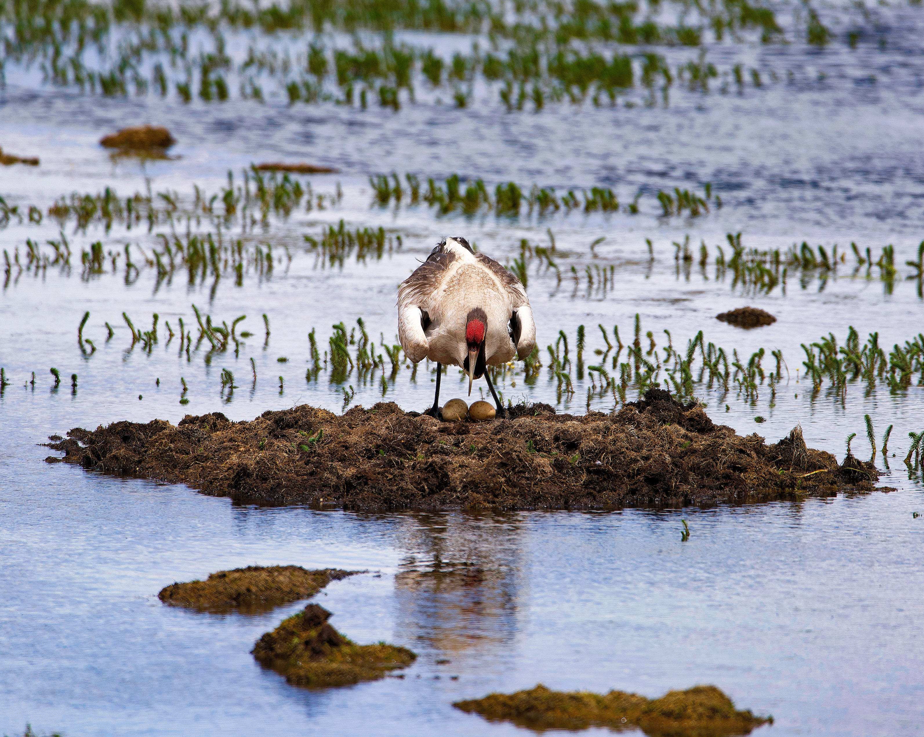 棲息在濕地上孵蛋的母鶴,國家一級保護(hù)動物。