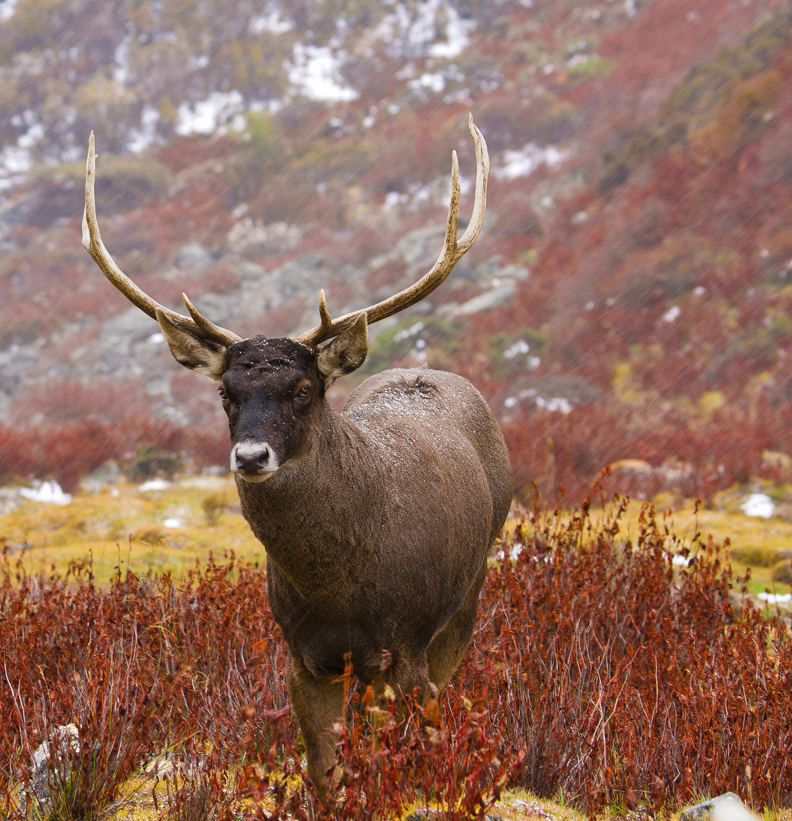 雪山下的馬鹿,國家二級保護(hù)動物。