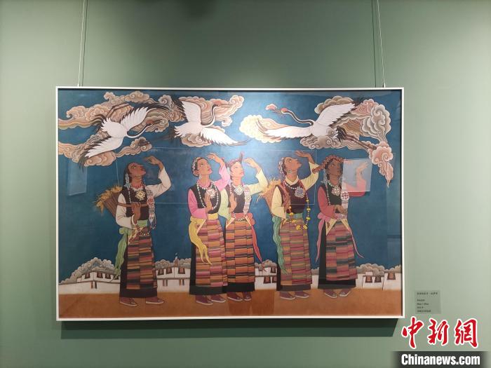 3月5日,“鏈接西藏——翟躍飛作品展”在北京西藏文化博物館開(kāi)幕。圖為展出作品《美麗的家鄉(xiāng)·拉薩河》。中新網(wǎng)記者 林世雄 攝