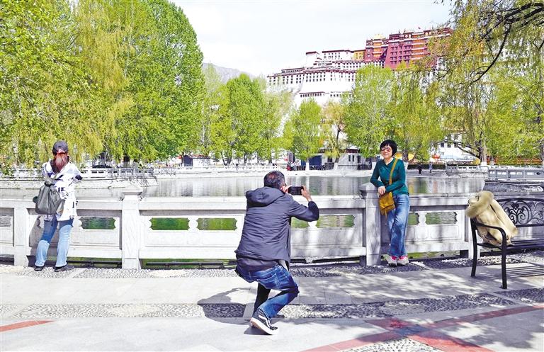 游客在布達拉宮廣場拍照留念。記者 旦增蘭澤 攝