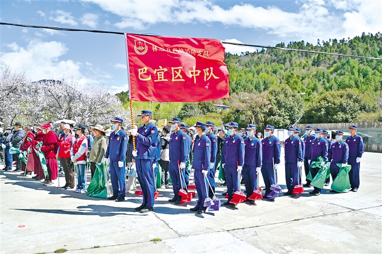 為高質(zhì)量推動(dòng)生態(tài)環(huán)境保護(hù)工作各項(xiàng)整改任務(wù)落實(shí)落細(xì),近日,西藏林芝市森林消防支隊(duì)巴宜區(qū)中隊(duì)與轄區(qū)各單位攜手合作,開(kāi)展“凈美巴宜”環(huán)境衛(wèi)生專項(xiàng)整治行動(dòng)。