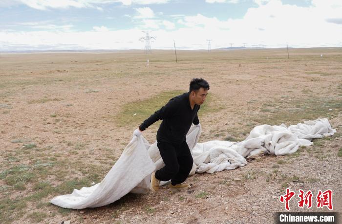 圖為可可西里管理處五道梁保護站生態(tài)管護員德尕在青藏公路沿線收集垃圾。馬銘言攝