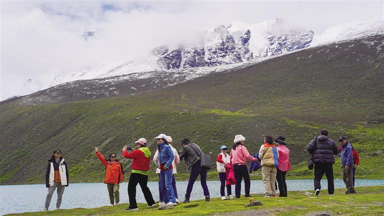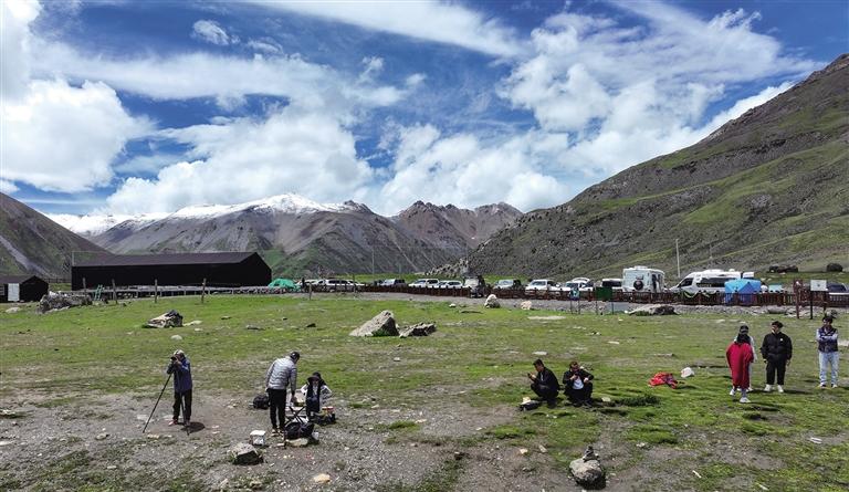 “眼前的景色如此浩瀚,無論我們?nèi)绾闻?,都無法將其完全收入眼底;手中的相機快門不停地按下,卻總感覺無法捕捉到每一處細(xì)節(jié)的美麗;社交媒體上的照片和視頻,雖然已經(jīng)分享了無數(shù),但總覺得還有更多美好未能展現(xiàn)。言語在這一刻顯得如此蒼白無力,無法完全傳達(dá)我們面對美景時的激動心情?!边@是河南游客張曉明和劉芳夫婦對薩普雪山的贊美。置身于這絕美的畫卷中,一聲聲驚嘆,是他們對大自然鬼斧神工的贊美,也是他們內(nèi)心震撼的真實寫照。
