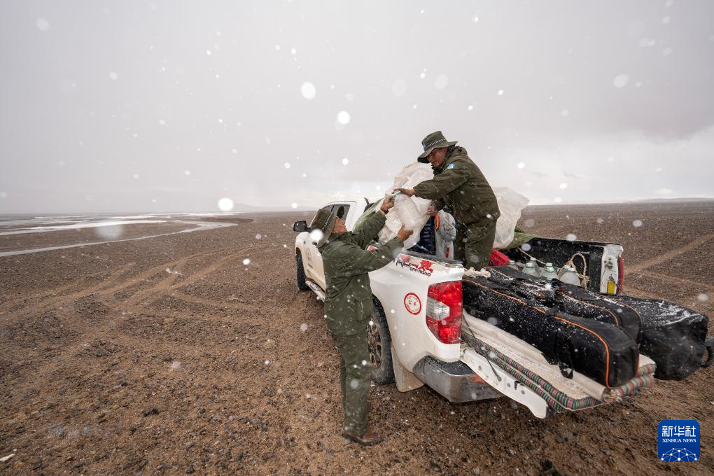 “快快快,天要黑了,趕緊把帳篷扎起來!”羌塘國家級自然保護(hù)區(qū)羅布玉杰野生動物管護(hù)站站長格桑倫珠對同事索朗和羅布說到。