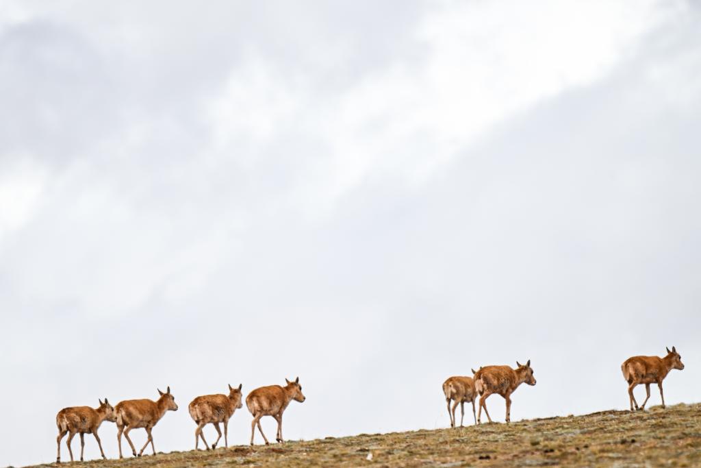 2024年5月27日,藏羚羊在可可西里五道梁地區(qū)遷徙。新華社記者 張龍 攝