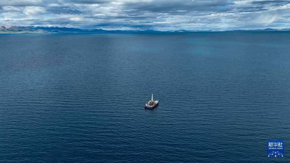 7月11日拍攝的納木錯(cuò)水上鉆探平臺(tái)(無(wú)人機(jī)照片)。新華社記者 晉美多吉 攝
