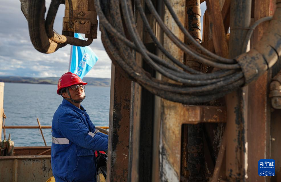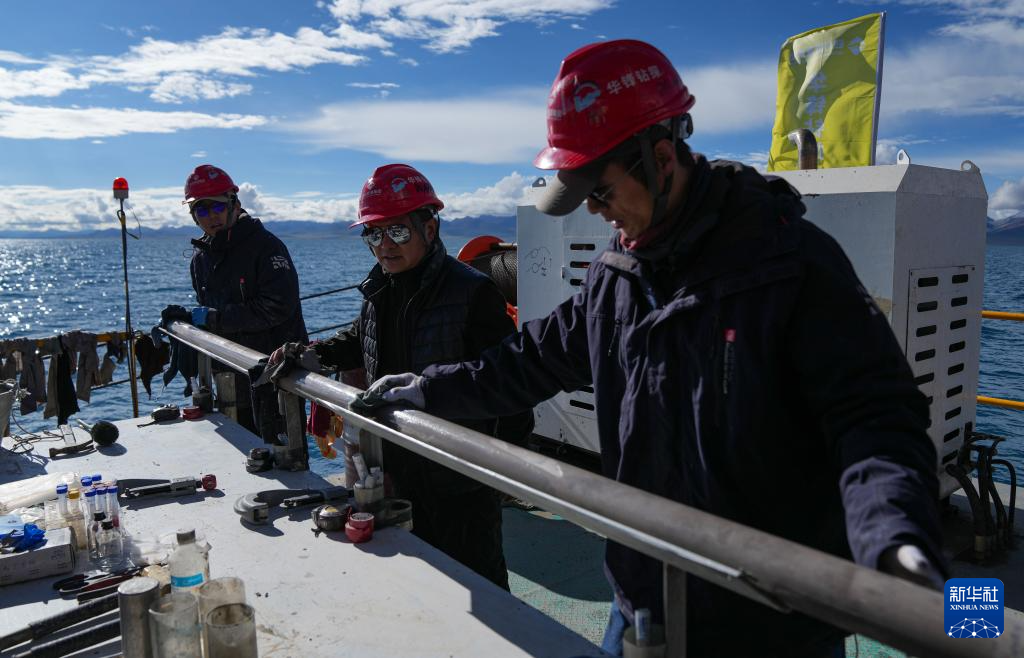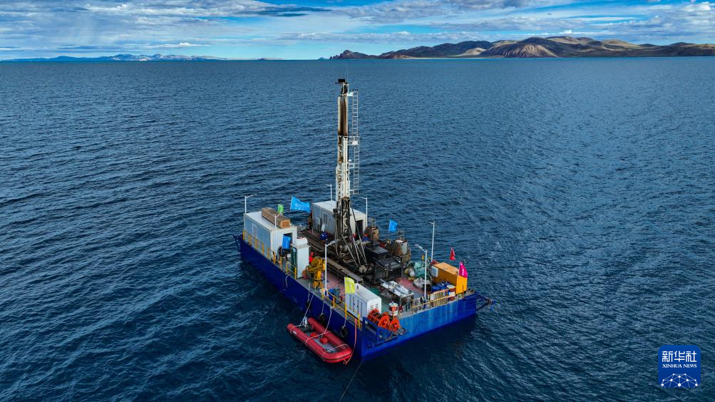 在海拔超過(guò)4700米的西藏納木錯(cuò),湖泊巖芯鉆探工作正在開展中。