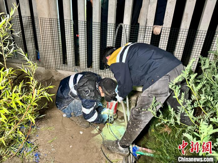 圖為桑日綜合維修車間綜合工區(qū)職工在排水溝進(jìn)行抽水作業(yè)。馬生明拍攝