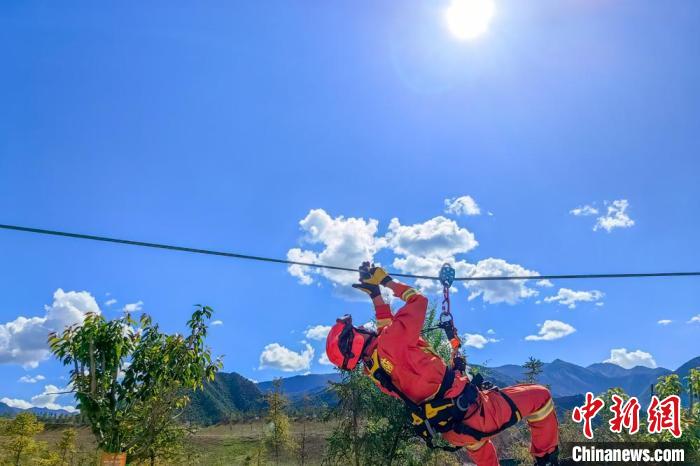 圖為駐訓(xùn)期間,森林消防進(jìn)行繩索救援橫渡訓(xùn)練。姚天銳 攝