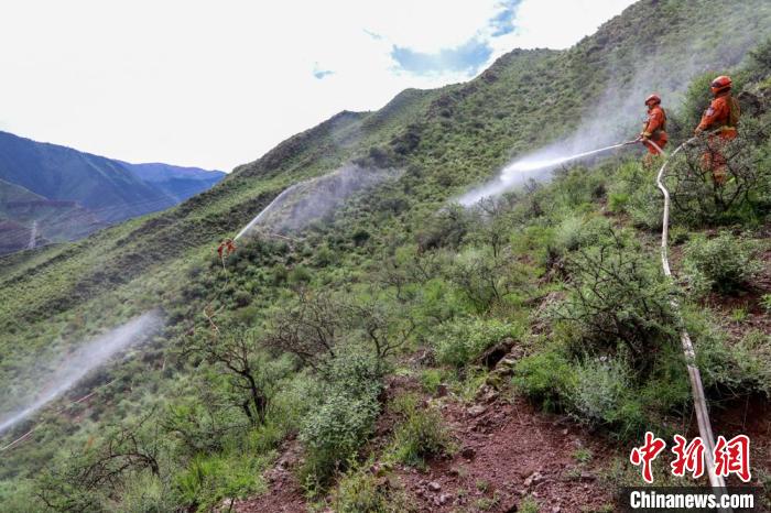 西藏昌都森林消防野外駐訓(xùn)期間進(jìn)行合圍滅火訓(xùn)練。姚天銳 攝