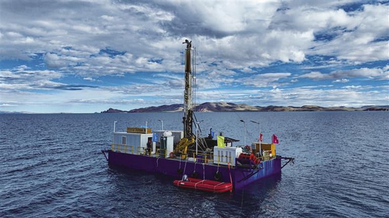 納木錯水上鉆探平臺(無人機照片)。 新華社記者 晉美多吉 攝