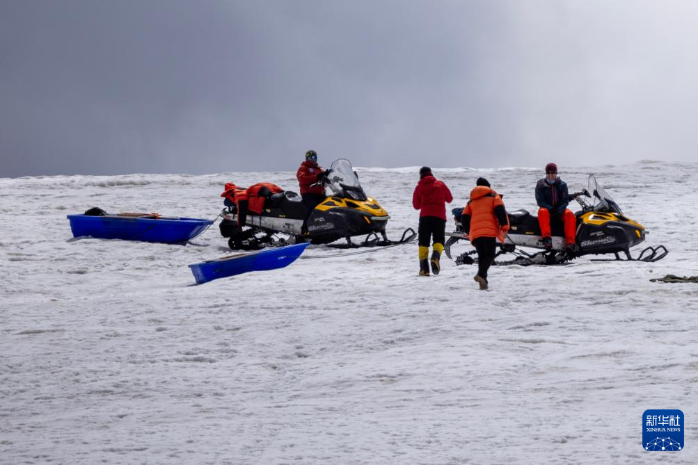 科考隊員準備搭乘雪地摩托前往冰原深處作業(yè)(9月4日攝)。新華社記者 姜帆 攝