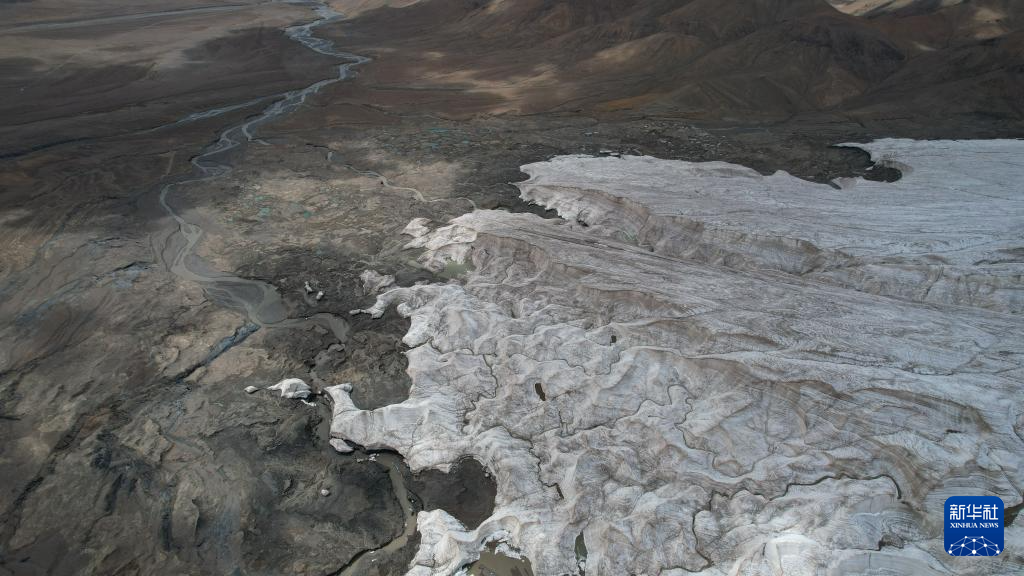 這是9月4日拍攝的普若崗日冰原8號冰川和冰川消融形成的徑流(無人機(jī)照片)。新華社記者 劉詩平 攝