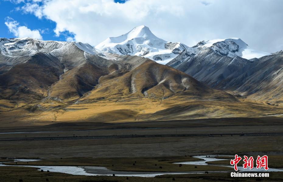 9月29日,金秋時(shí)節(jié),藏北草原褪去了夏季的翠綠,換上了金色的盛裝。在陽(yáng)光的照耀下,金黃的草甸、雪山、牛羊、村莊、河流相映成趣,構(gòu)成了一幅美不勝收的畫卷。