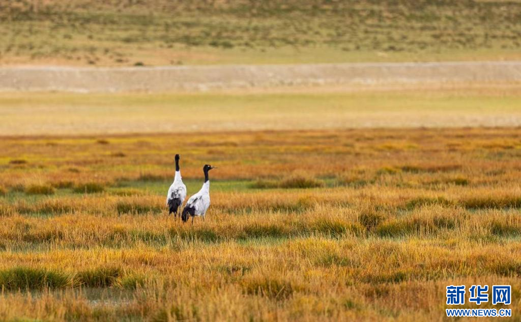 9月30日拍攝的西藏阿里地區(qū)普蘭縣境內(nèi)的黑頸鶴。新華網(wǎng)發(fā) 劉曉東攝