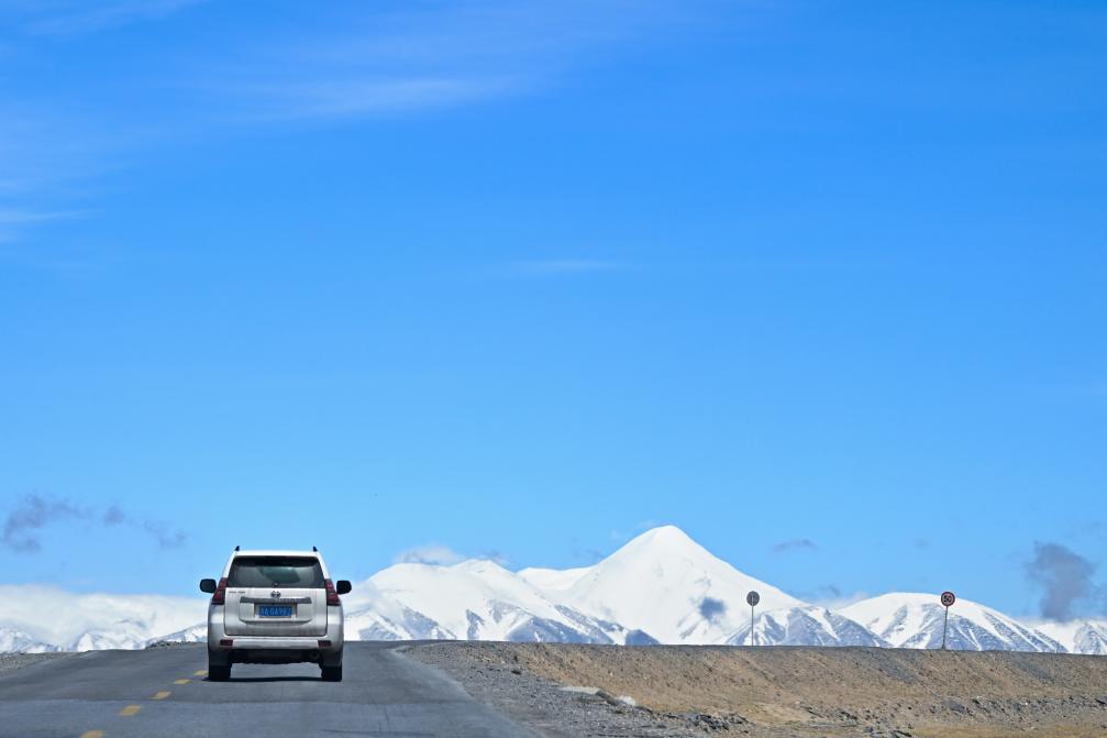 2024年5月27日,一輛車(chē)行駛在青藏公路上。新華社記者 張龍 攝