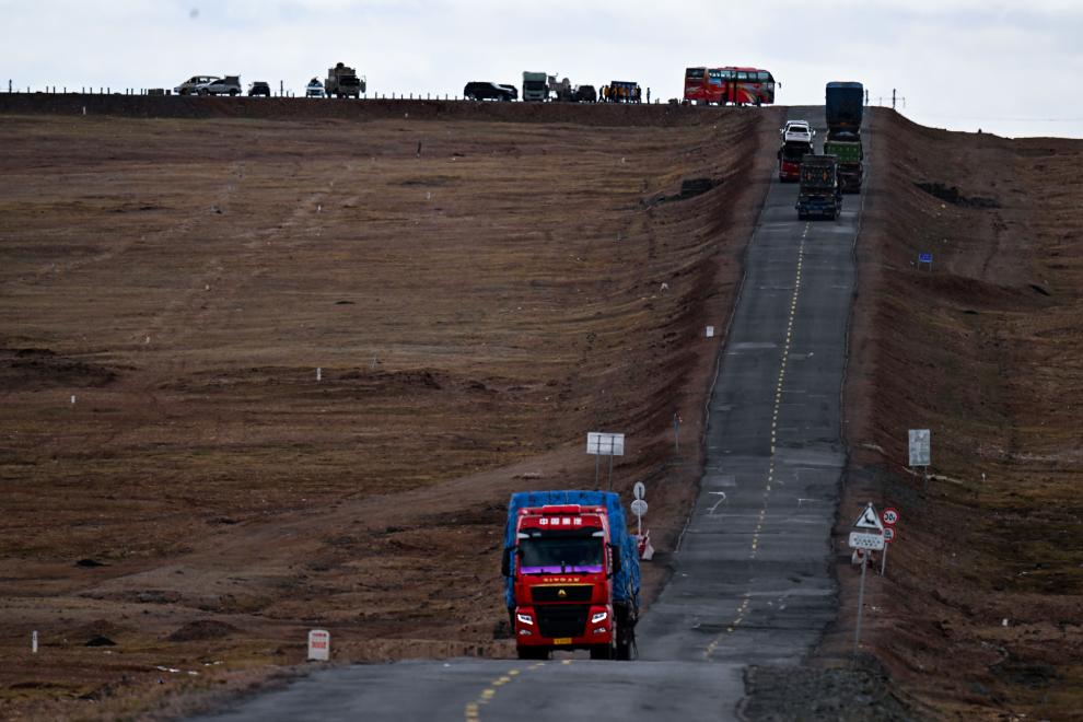 2024年5月25日,車(chē)輛行駛在青藏公路上。新華社記者 張龍 攝