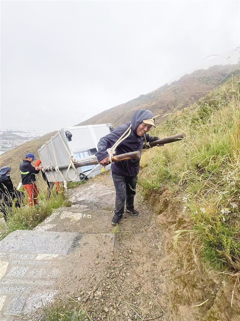 為了方便游客喝到平價(jià)飲料,單位引進(jìn)了12臺(tái)售賣機(jī),安裝在公園各個(gè)角落,售賣機(jī)里各種飲料、礦泉水等商品跟超市售賣的價(jià)格基本一致。扎西曲培說(shuō),他們將售賣機(jī)安裝在海拔4000米的地方,過(guò)程是艱難的。一臺(tái)售賣機(jī)重約400斤,車輛上不去,他和森林消防隊(duì)員通過(guò)人背肩扛,一步步抬上去的。目前,在南山公園“祖國(guó)萬(wàn)歲”的山峰處,大家口渴了,拿出手機(jī)掃描一下,即可喝到平價(jià)的礦泉水。