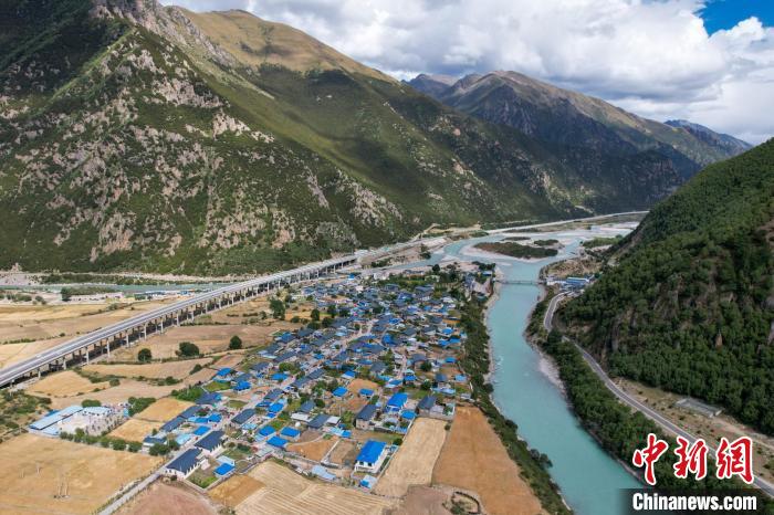 2024年9月1日拍攝的西藏林芝工布江達(dá)縣高等級公路(左)和國道318線(右)。(無人機(jī)畫面)中新社記者 江飛波 攝