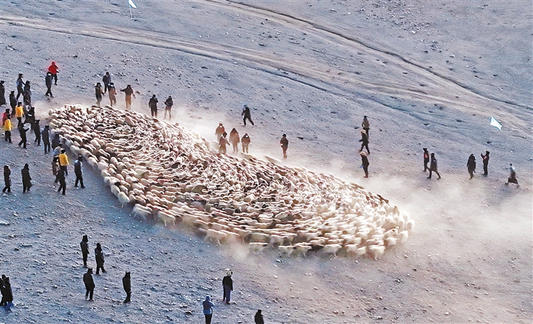 推瓦村牧民將羊群聚攏,準(zhǔn)備轉(zhuǎn)場。