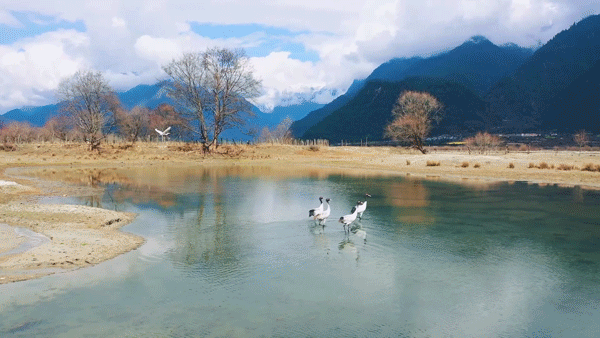 近日,在西藏波密縣境內(nèi),山野間綻放的油菜花、桃花與易貢湖畔翩躚起舞的黑頸鶴,勾勒出一幅充滿生機(jī)與活力的春光美景。