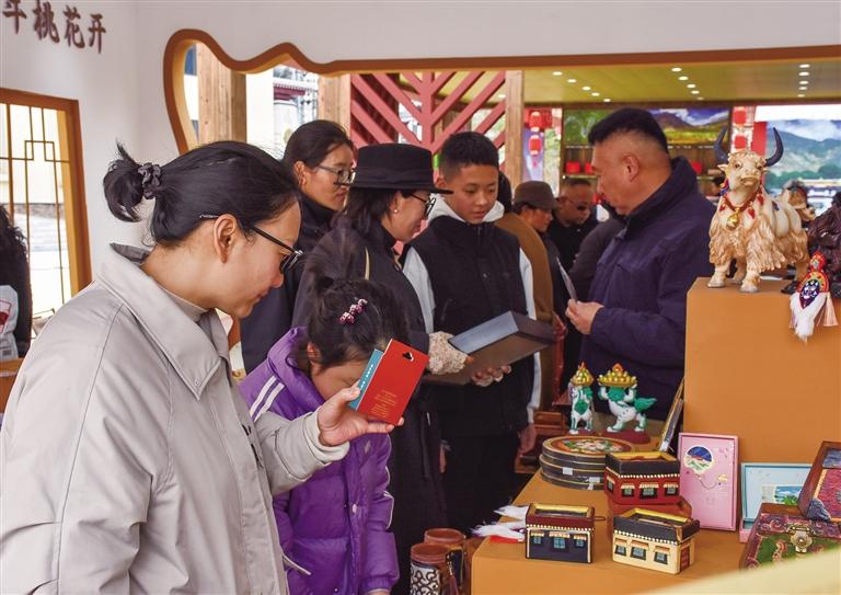 游客和市民群眾在文創(chuàng)產(chǎn)品展銷區(qū)參觀、選購特色產(chǎn)品。 圖片均由 劉楓 謝筱純 攝