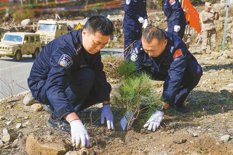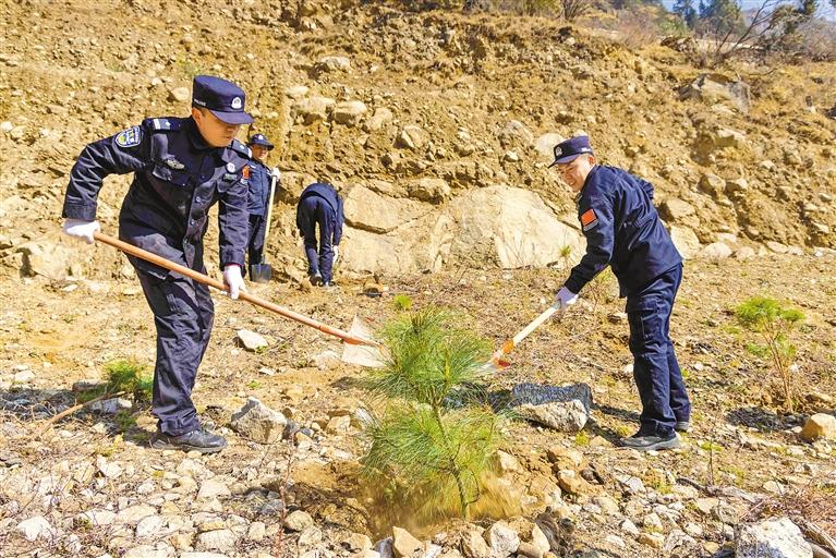 活動(dòng)現(xiàn)場(chǎng),民警與群眾組成協(xié)作小組,揮鍬鏟土、扶苗培土,嚴(yán)格按照技術(shù)標(biāo)準(zhǔn)栽種松、柏等樹苗。經(jīng)過(guò)數(shù)小時(shí)奮戰(zhàn),數(shù)百株樹苗迎風(fēng)挺立,為高原大地披上嶄新綠裝。