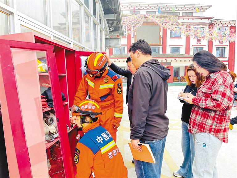 林芝市墨脫縣消防救援大隊(duì)宣傳人員檢查養(yǎng)老機(jī)構(gòu)微型消防站的消防器材。通訊員 才旺多吉 攝