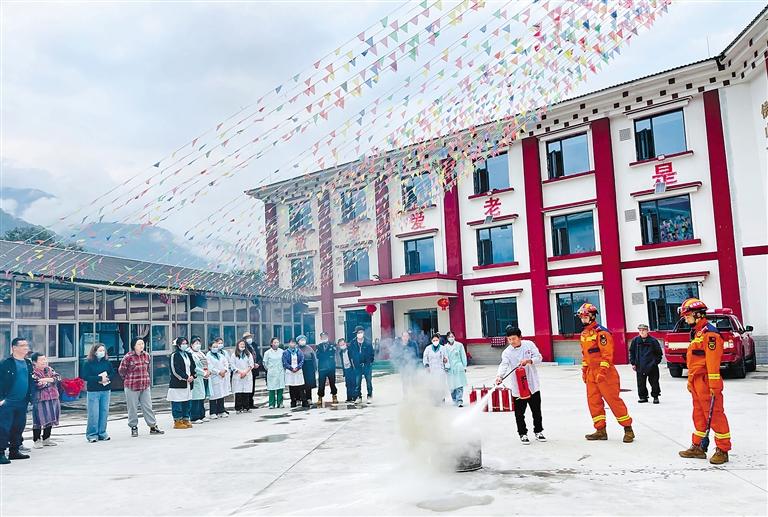 林芝市墨脫縣消防救援大隊(duì)宣傳人員走進(jìn)養(yǎng)老機(jī)構(gòu),現(xiàn)場演示滅火器的使用方法,并進(jìn)行實(shí)操演練。通訊員 才旺多吉 攝